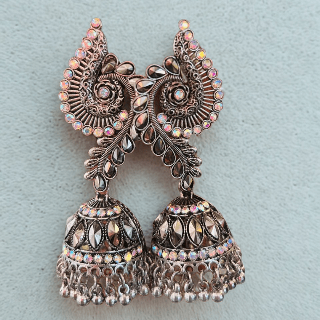 The dome-shaped jhumka design features delicate pearl drops that enhance their charm, making them ideal for weddings, festive occasions, or evening celebrations. Their graceful craftsmanship pairs beautifully with sarees, lehengas, or Indo-western outfits.