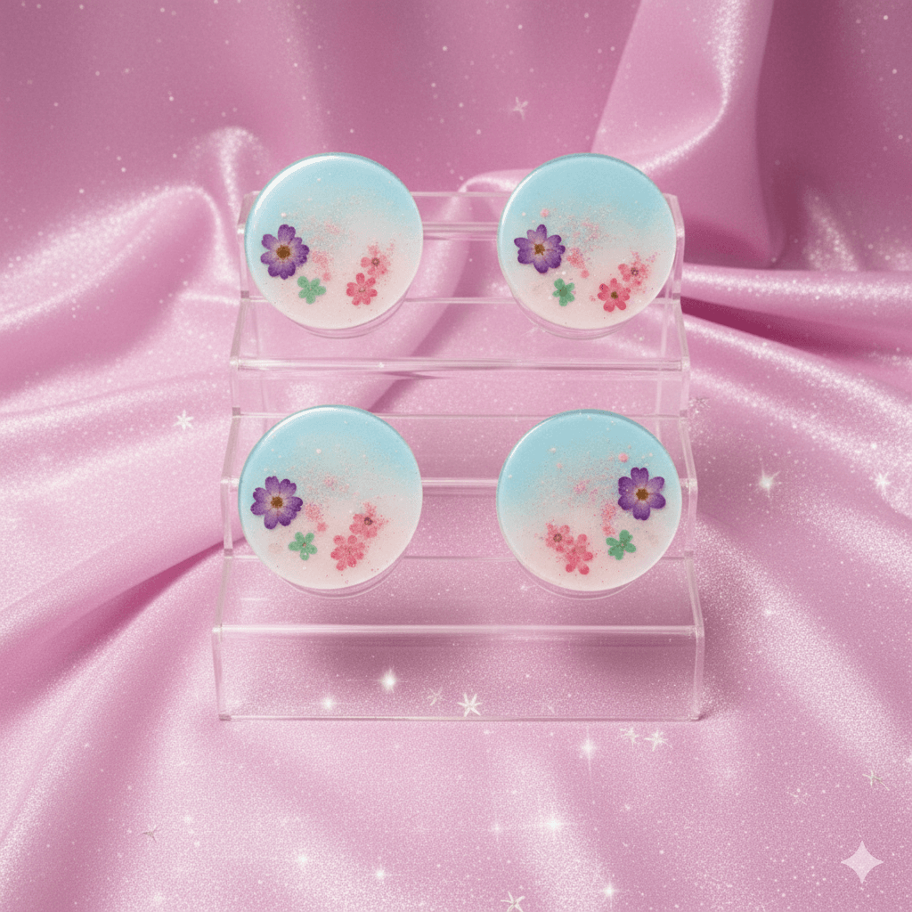 Our Floral Fantasy Resin Coasters are lovingly handcrafted with a dreamy pastel blend of pink and blue, featuring real pressed flowers sealed in crystal-clear resin. Each coaster glimmers with subtle sparkle, making it both functional and decorative — a perfect blend of art and utility.